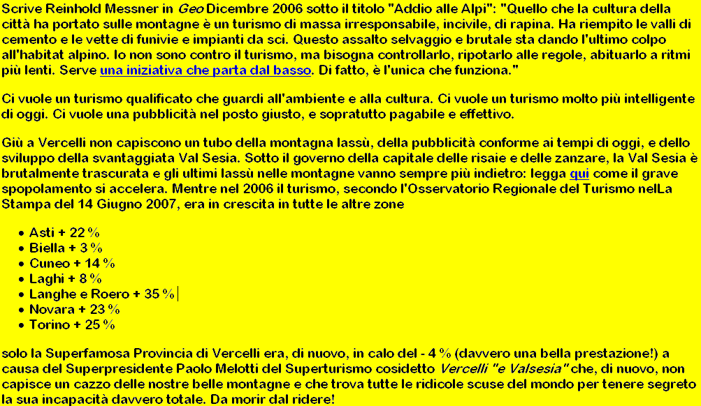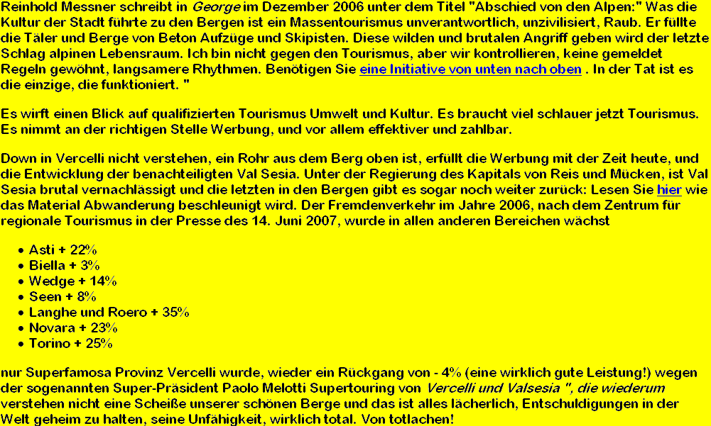 Die GTA liegt in Italien und nicht in (und auch nicht irgendwo neben) Südtirol, das vom Tourismus deutscher und österreichischer Touristenmassen lebt und wo natürlich auch aufgrund der Geschichte verbreitet Deutsch gesprochen wird. Die GTA ist bis zu 400 Kilometer von Südtirol entfernt - soweit wie Leipzig von Tübingen oder wie die Preußische Tiefebene von Bayern! -, und in den Bergtälern der Region spricht man den lokalen und regionalen Dialekt (der im Norden natürlich dem im schweizerischen Kanton Tessin gesprochenen Dialekt mit seinen vielen ö und ü sehr ähnlich ist) und als Hochsprache selbstverständlich Italienisch.
