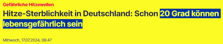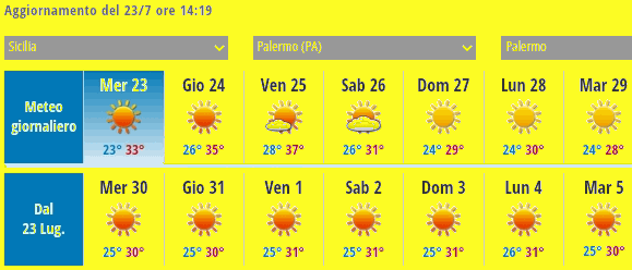 Welt hingegen lügt am 23. Juli "Für die Menschen in Italien ¦ auf Normaldeutsch: für die Italiener - JK ¦ werden die nächsten Tage also besonders anstrengend ... Das Hochdruckgebiet aus Afrika, das von den Meteorologen 'Kamel' genannt wird, soll dem Süden Temperaturen bis zu 45 Grad bringen." Da morire dal ridere - die Wirklichkeit sieht so aus: