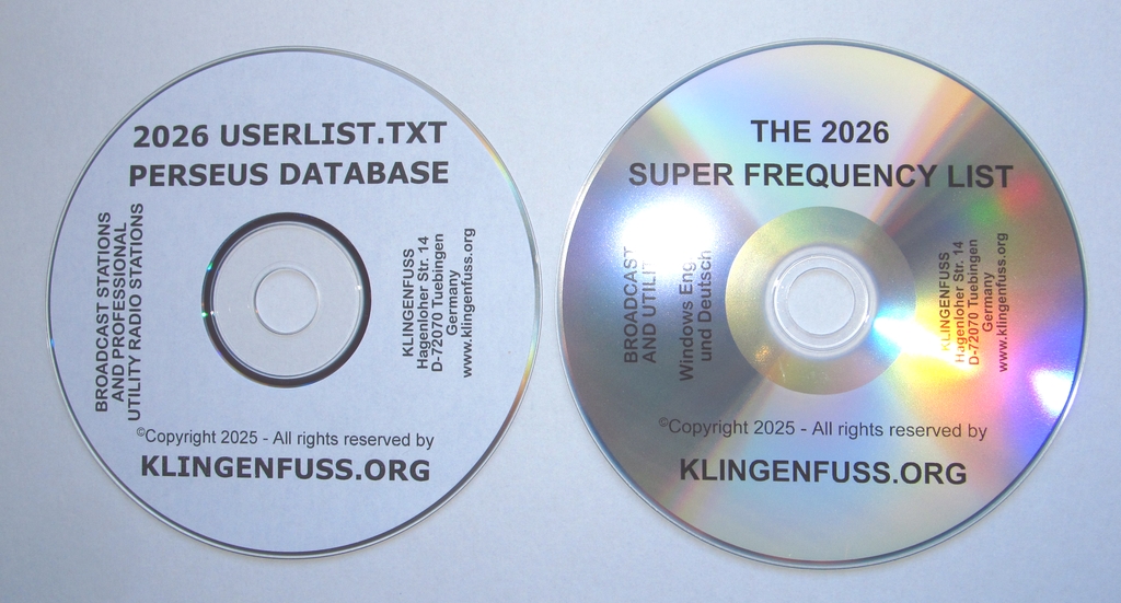 For perfectly edited broadcast radio station lists with a superb and unique ergonomic layout both in frequency and alphabetical order - acclaimed for decades and without any absurd restrictions - please refer to our 2026 Shortwave Frequency Guide. For a perfectly edited professional utility radio station frequency list with full details and exact schedules plus thousands of up-to-date reception times, please refer to our bestseller 2025/2026 Guide to Utility Radio Stations.