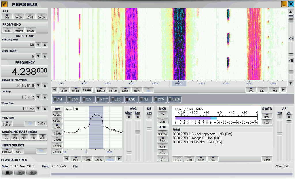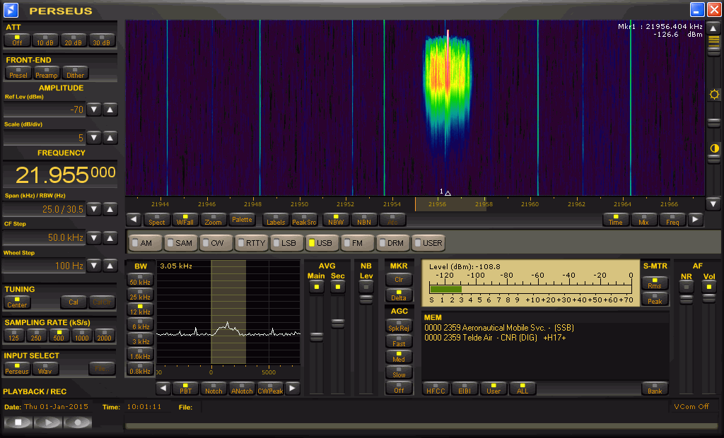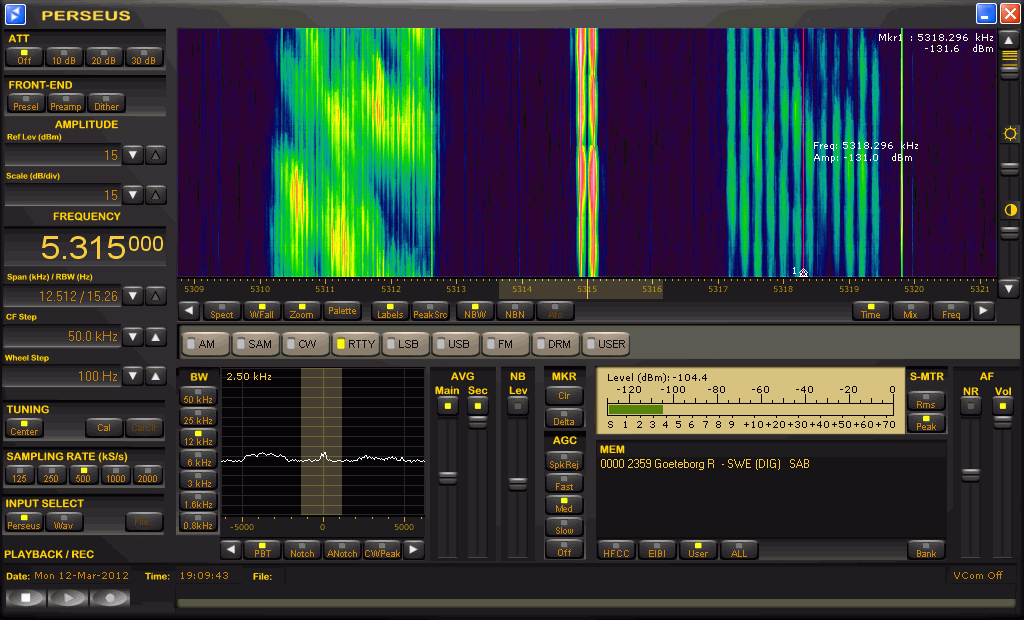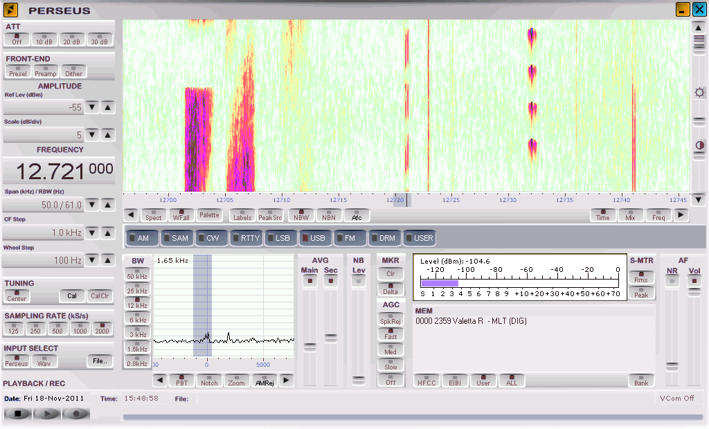 As you can see from the samples above, the PERSEUS LF-HF Software Defined Receiver, with its latest software version, is pretty good. With our proposals implemented - and more to come! - it could be considerably improved for the reception of the really interesting stuff! For less than 1,000 EUR, its technical performance is probably as good as any of those traditional 10,000+ EUR/USD boat-anchor receivers from CUBIC, HARRIS, ICOM, JRC, RACAL, RS, TENTEC, and the like. Complimenti, ragazzi lagiù oltroalpe. È davvero un capolavoro!