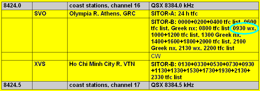 Note that our frequency lists always refer to the centre frequency f0 as internationally agreed, and not to any offset. Again, USB is the professional standard setting and there are no amateur "modes" such as "CW", "FAX", "RTTY" et al!