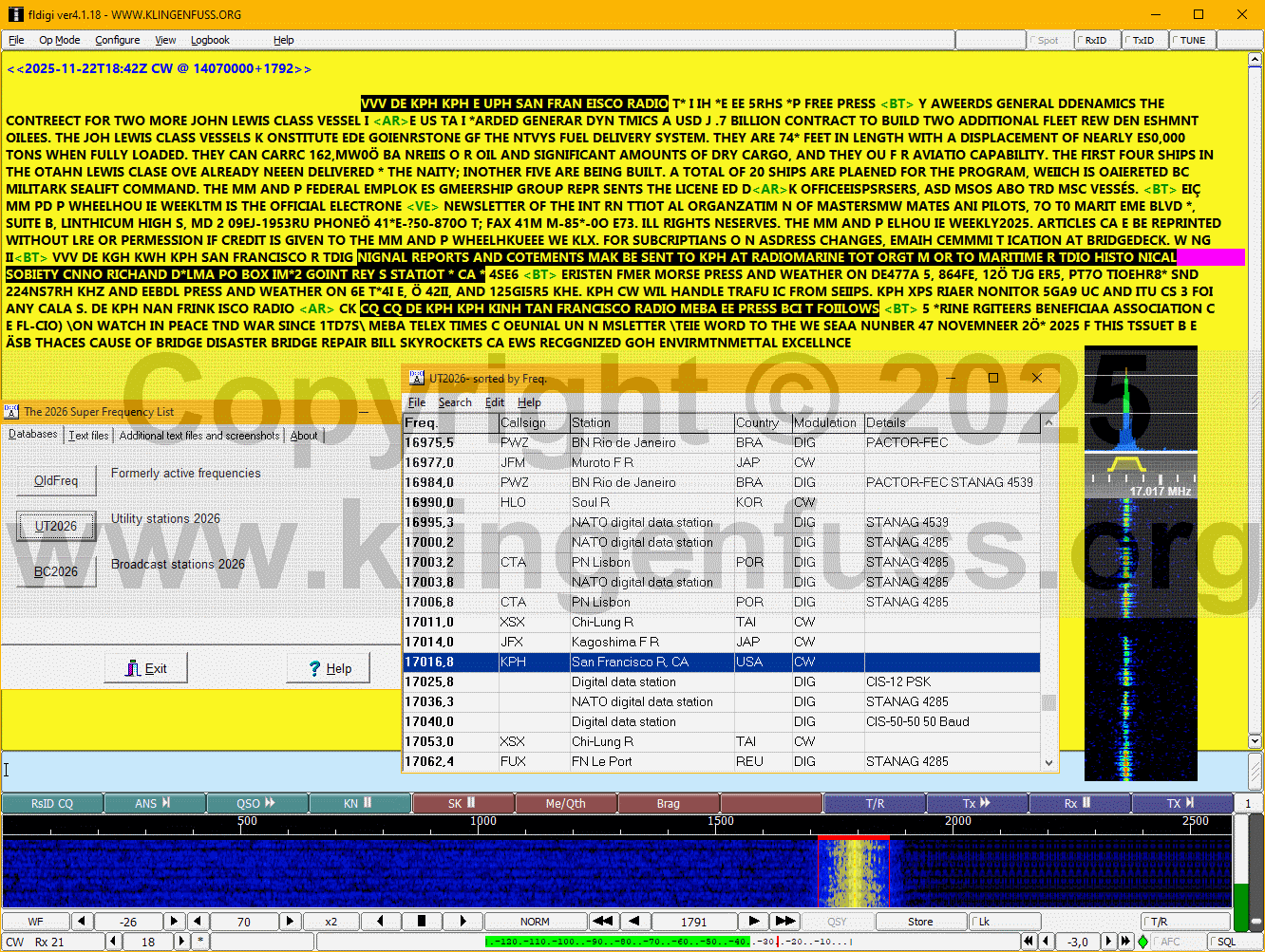 17151.2 kHz NMC United States Coast Guard San Francisco CA, United States of America