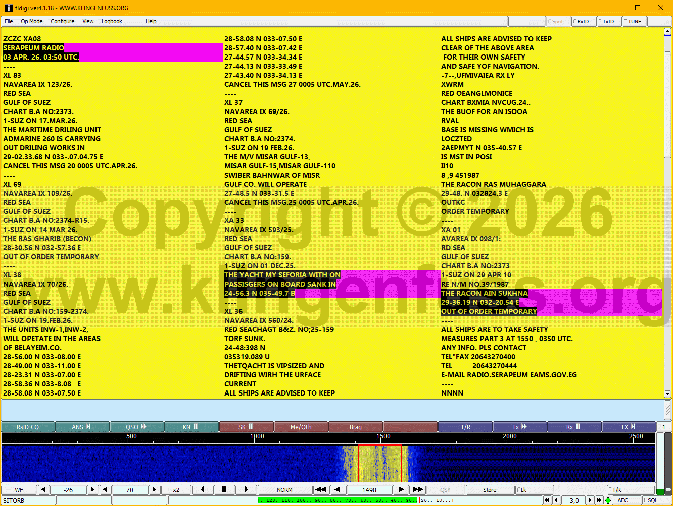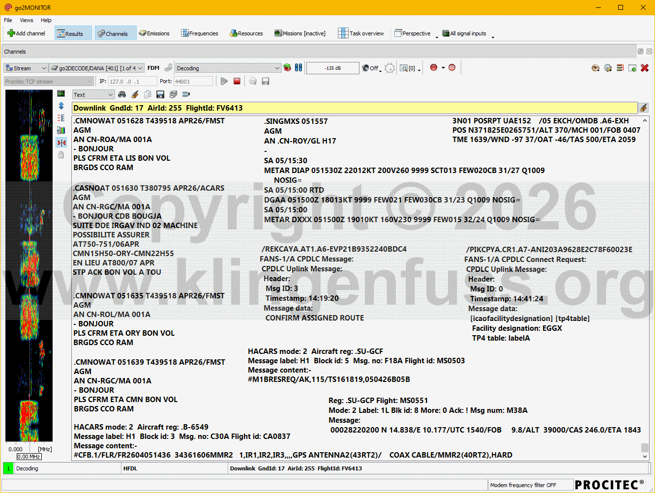 The following - very recent! - screenshots have been produced and uploaded to this international pooling webpage by our worldwide net of cooperators, using advanced equipment such as the superb PROCITEC Digital Data Decoders. All frequencies are in kHz, and all system times are UTC. Schedules and traffic details can be found in our 2025/2026 Guide to Utility Radio Stations. Standard aeronautical • meteorological • telecommunication abbreviations and ICAO Airport Codes and Airline Designators can be found everywhere; certain very special procedures and terms - particularly for avionics - are explained hereunder. Latest screenshots on top!