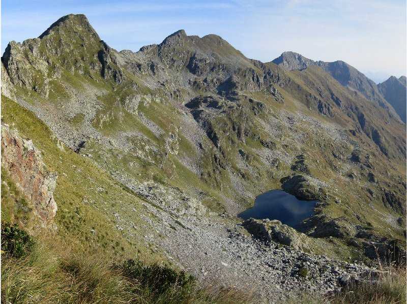 La cresta dal primo piano a sinistra: Bocchetta di Cevia - Bonda Piatta -