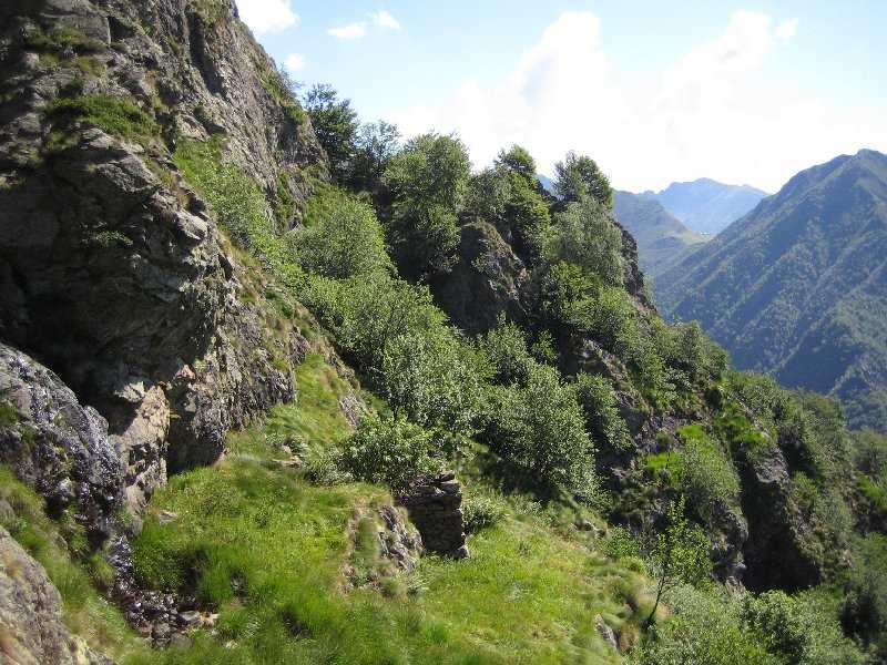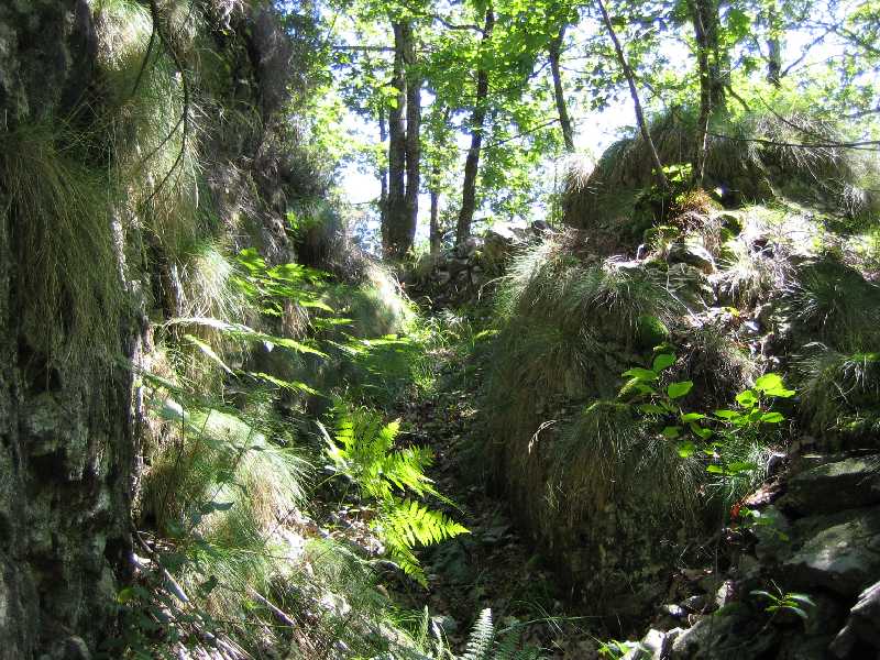 A sinistra del sentiero si vedono le rovine nella giungla valsesiana