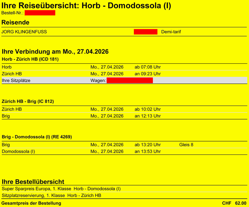 kostet Horb - Domodossola samt einer Sitzplatz-Reservierung gerade mal 62 Stutz!