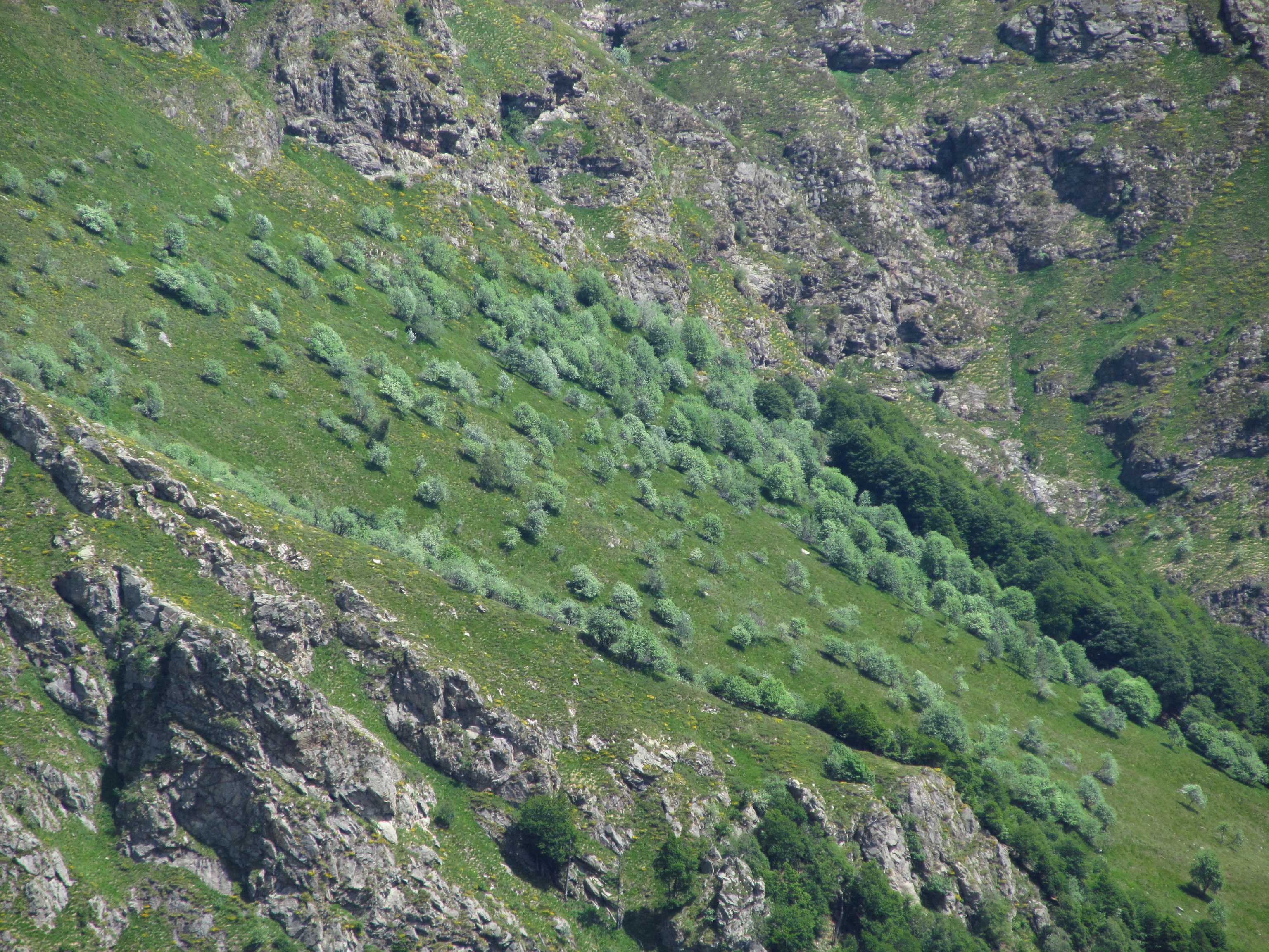 Ponte della Gula, eine der größten Sehenswürdigkeiten im unteren Mastallonetal bei der Fahrt von Varallo nach Rimella. Spilker: "Eine kleine Steinbrücke, die sich elegant von einer Klammwand zur anderen schwingt. 35 Meter unter der Ponte della Gula schimmert das grünliche, glasklare Wasser des Mastallone. Es ist hier über 10 Meter tief, senkrecht ragen die Felswände rechts- und linksufrig aus dem Fluß. An der Felswand erkennt man einen alten Saumpfad. Die Klamm selbst ist unproblematisch. So haben wir Muße, die Eindrücke auf uns wirken zu lassen. Weit hängen die ausgespülten Felswände über uns, düster und unheimlich ist es hier unten. Ab und zu verirrt sich ein Sonnenstrahl und läßt das klare, tiefe Wasser grünlich schimmern. Ich lasse mich zu Freudenschreien hinreißen. Was gibt es doch für schöne Fleckchen auf unserer Erde!" Natürlich kennen wir auch in diesem wilden Gebiet zahlreiche schöne und versteckte alte Bergwege. 1. Juli 2008. Foto anklicken!