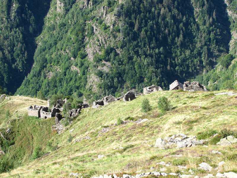 Im längst vergriffenen Sesiatal-Führer aus dem Jahr 1924 - also am Ende der Belle Epoque des Alpinismus, aus der auch unsere beiden Traditionshotels stammen - sind einige dieser einsamen Wege noch ansatzweise beschrieben. 94 Jahre später ist außer uns offensichtlich niemand mehr in der Lage, diese schon längst völlig vergessenen Wege zu finden oder gar zu spektakulären Überschreitungen intelligent zu kombinieren. Viele Wegspuren haben wir erst in den letzten Jahren wiederentdeckt und freigesägt. Es gibt zwar italienische Gebietsführer, allerdings werden darin nur die recht wenigen Routen beschrieben, die der ziemlich ahnungslose CAI Varallo kennt. Dieser konzentriert seine Aktivitäten nämlich auf das Gebiet von Alagna am oberen Ende des Sesiatals, weil er ebendort am Monte Rosa die meisten seiner 19 Sektionshütten betreibt. In absehbarer Zeit wird es keinen Wanderführer und schon gar keine brauchbare Karte geben für die wilden Berge unmittelbar bei Varallo. Die echt interessanten Wege in diesem Gebiet kennen sowieso nur wir, beispielsweise Alpe Varambello, Bocchetta della Graziella, Cima del Vaso, Cima Moscatelli, Colma Galmanna, Corno di Vegliana, Cresta della Diga, Hubal, Massa dei Ratei, Molino superiore di Cervarolo, Sasso Negro, Sella dell'Oca, Stutz, Zuccarolo und Valle dell'Inferno: das Tal der Hölle, das auf keiner Landkarte steht und in dessen Peripherie sich nur noch die Wilderer herumtreiben!