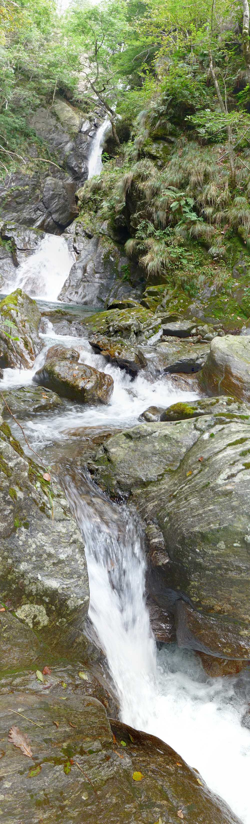 Varallo liegt etwa 450 Meter hoch, und dort ist es im Sommer natürlich einige Grad wärmer als oben in Rimella auf 1200 Metern Höhe. Anders als auf den Alpwegen und Bergwiesen oberhalb von Rimella benützen wir deshalb im unteren Mastallonetal und in der Umgebung von Varallo öfters schöne und unbekannte Waldwege, bei denen man angenehm im kühlen Schatten aufsteigen kann. In den Tälern gibt es wilde Bäche und Flüsse mit exzellenten einsamen Badegumpen zum Abkühlen, die nur zu Fuß erreichbar sind und die außer uns deshalb kaum mehr jemand kennt. Wir haben unterwegs genügend Zeit für Pausen zum Baden, Beerensammeln und Faulenzen! Einsame Aussichtsberge wie Bec d'Ovaga, Cima del Camossaro, Cima del Vaso, Massa del Turlo, Monte Croce, Monte Quarone und Pizzo Cerf liegen mit 1200 - 2000 Metern Höhe natürlich oberhalb der Waldgrenze und bieten entsprechend großartige Panoramen von den Walliser Viertausendern mit dem alles beherrschenden Massiv des Monte Rosa und der Mischabelgruppe bei Saas Fee bis hinunter in die Po-Ebene mit Monviso, Seealpen, Ligurische Alpen und dem toskanischen Appennin weit hinter Florenz.
