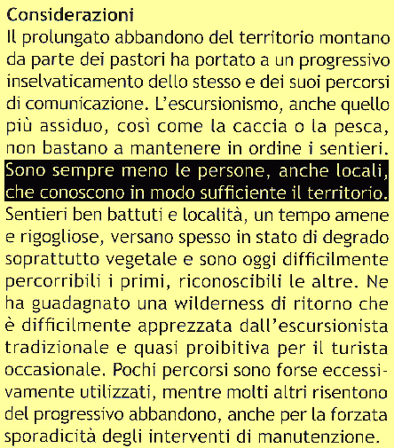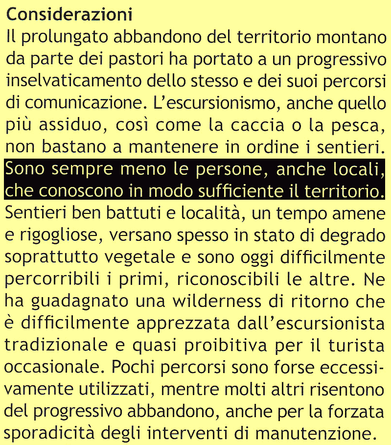 Nur wir - und nicht etwa die Einheimischen vor Ort! - kennen tatsächlich über 1000 (eintausend!) Wege und Wegspuren und deren Kombinationsmöglichkeiten zu spektakulären Rundwanderungen. Nur wir - und sonst niemand! - verfügen über umfassende schriftliche Aufzeichnungen einschließlich der kompletten Erfassung sämtlicher Wegpunkte und Tracks mittels GPS durchgehend seit 1999! Im Jahresheft 2010 des CAI Varallo stellt der neue Präsident der Kommission für Wegmarkierung in einer frustrierten Bestandsaufnahme knallhart fest, dass nicht einmal die Einheimischen mehr ihre Wege kennen, dass viele Wege im Zuge der jahrzehntelangen Entvölkerung des Berggebiets völlig "vergessen" wurden und dass sich praktisch niemand mehr an die ursprüngliche Wegführung erinnert. Im Jahresheft 2011 schreibt derselbe völlig zurecht, dass ausgerechnet die Wege rund um Varallo kaum dokumentiert sind: "Proprio nel Comune sede della nostro Sezione non esista alcuna nostra pubblicazione e che sopratutto sia così poco omogenea la situazione della segnaletica." Und Wege, die gerade erst ausgeschlagen und ausgemäht wurden, sind wegen der Entvölkerung der Berge schon wieder "verschwunden" und werden jetzt zwangsweise aufgegeben ... und nur wir haben sie professionell erfaßt! "L'abbandono delle nostre montagne ha cancellato anche percorsi ripuliti recentemente. Per questo motivo alcuni percorso dovranno essere forzatamente abbandonati." Inutile dire che, die Kollegen Wilderer kennen noch am ehesten die alten Wege, aber sie erzählen es garantiert niemandem ... und natürlich kennen sie jeweils nur ihr eigenes (Seiten-) Tal und bei weitem nicht das gesamte riesige Gebiet so wie nur wir. Ausschnitt anklicken!