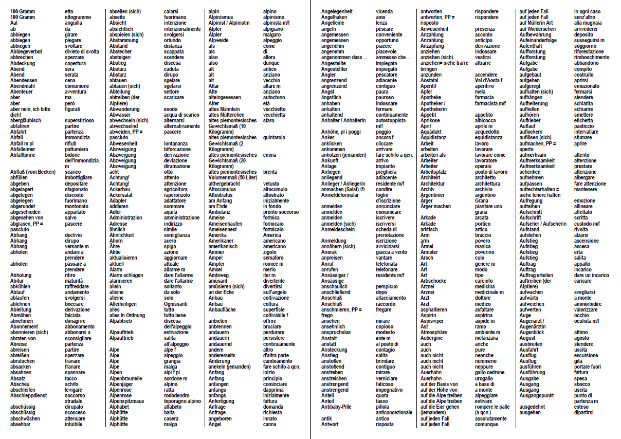 Es gibt weltweit kein anderes Wörterbuch, in dem alle diese Wörter stehen. Sie kommen zu 100 Prozent aus der Praxis beim jahrelangen Bergwandern im Piemont!