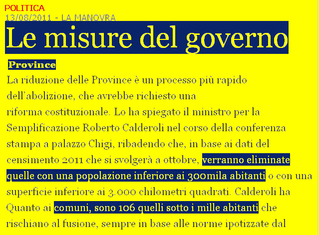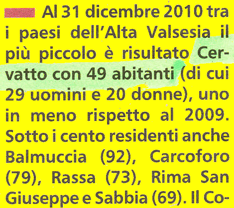 Giorgio: "After twenty years, it's about time to talk turkey! Togliere immediatamente e radicalmente tutti questi ridicoli microcomuni che da 200+ anni stanno da morire. Cervatto ha 19 abitanti, Rimella 74, Sabbia 46, roba da matt'!