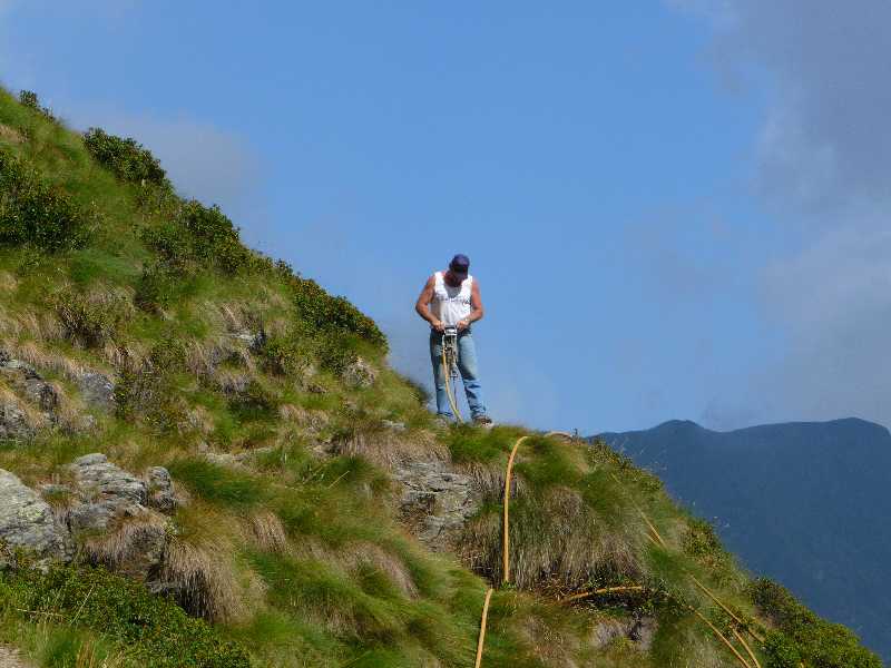 Germano Vittoni, Cravagliana Barracone, Autista ATAP - 28 Agosto 2009: "L'altra settimana ho portato una coppia su a Rimella. Fanno la Via Alpina dal Mediterraneo fino a Vienna in quattro mesi. Erano Liguri, brava gente, lei una bella donna. Mi hanno detto che, in tutto l'arco alpino ed in due mesi di camminata finora, solo in Valsesia la segnaletica è terribilmente insufficiente. Che casino!" Giorgio: "Allora, al 17 Maggio sono sceso dal Pizzo via la Sella dla Calcara. Era bellissimo con un mare di narcisi sul Prà del Cerf. Ti ricordi il lavoro che abbiammo fatto in Maggio 2002, su e giù dalla Galmanna con la squadra di Cravagliana? Che bel lavoro, più di sette anni fa. Nostra segnaletica è veramente perfetta fino a oggi!"