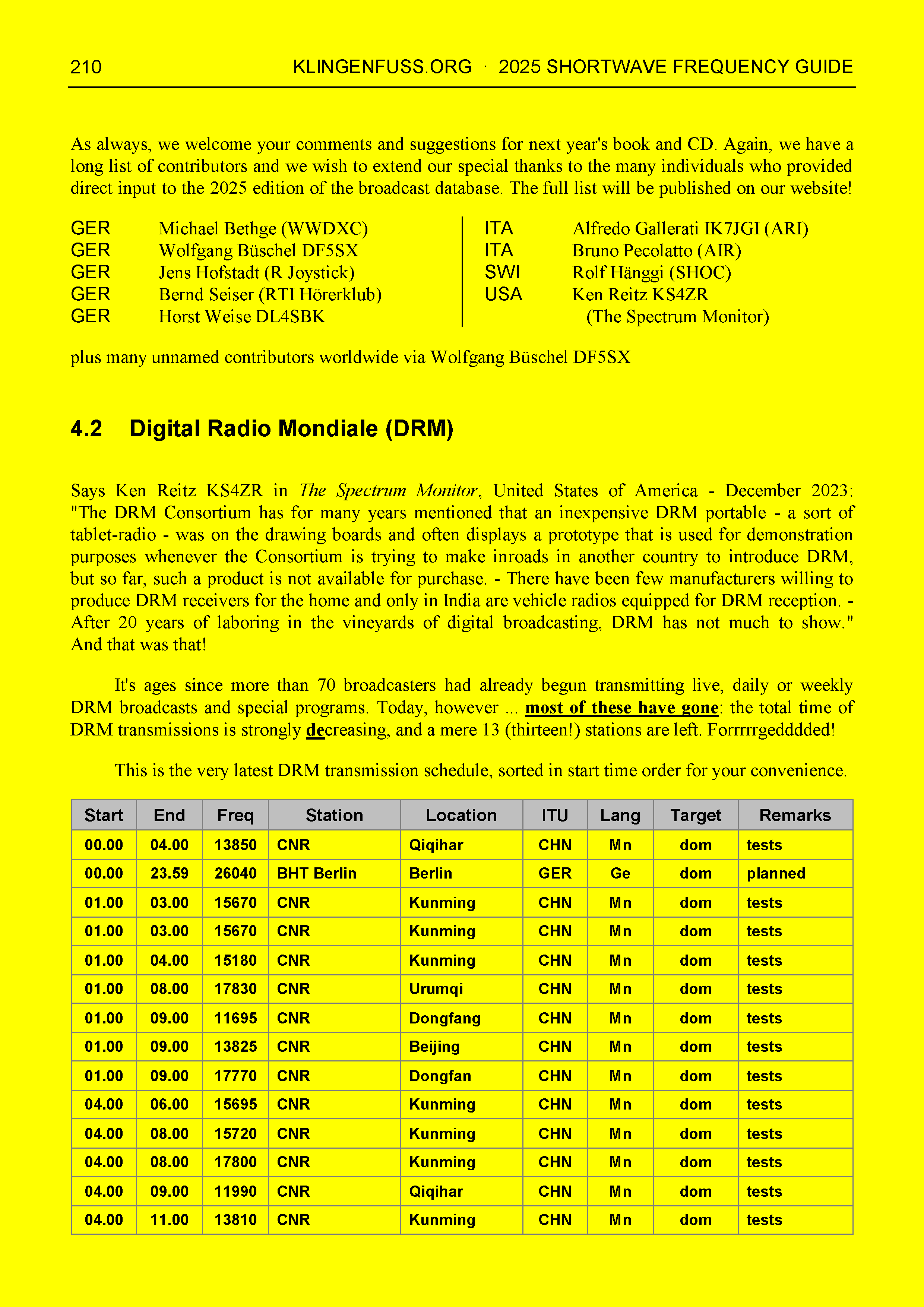 We wish to thank more than 70 experienced collaborators and radio monitors worldwide for valuable contributions and updates. Among them: